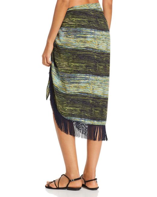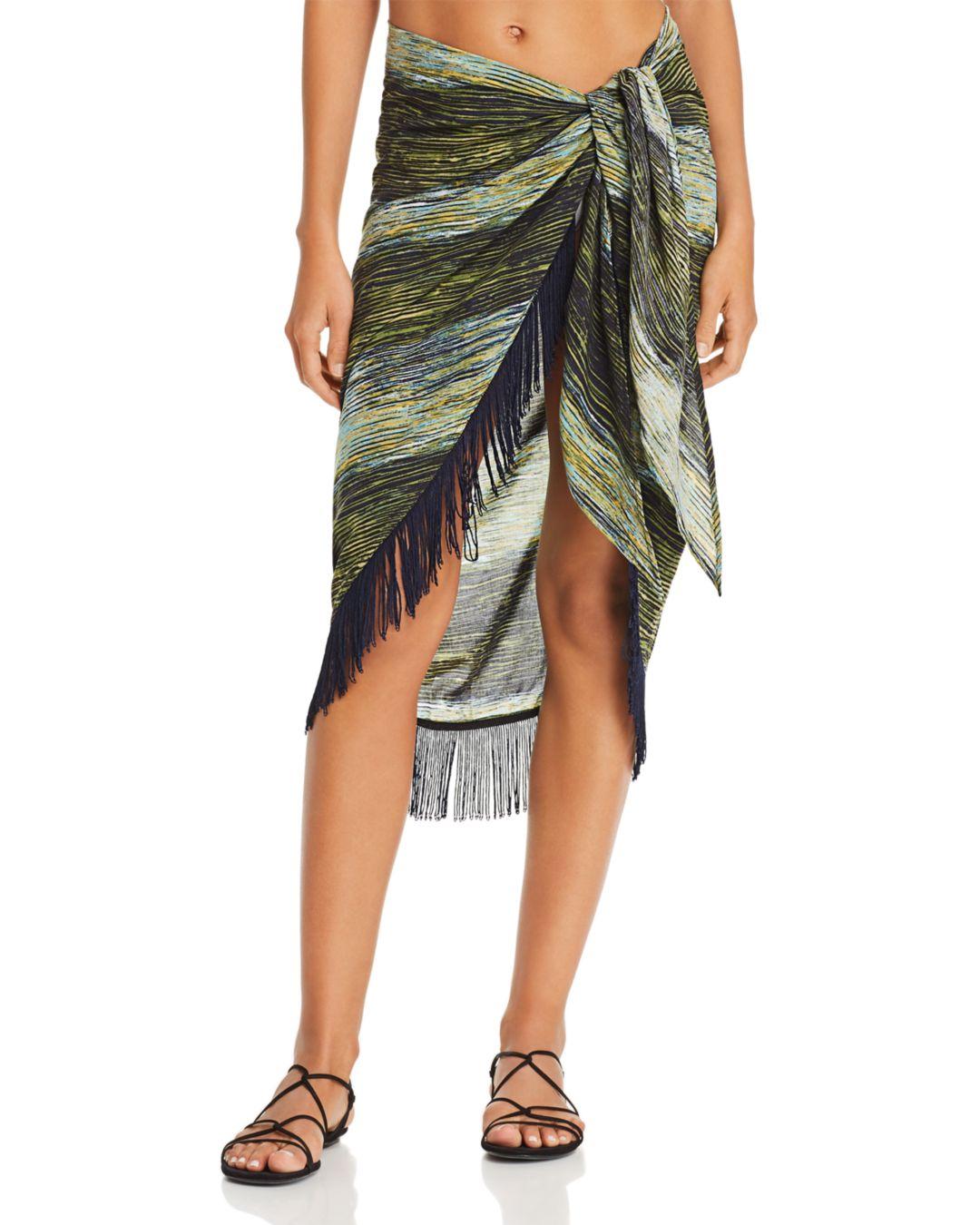 From the Midnight Waves collection. Stay cool and dry in this chic pareo featuring a colorful striped pattern and long fringe detail. Pull-on with tie at waist. Striped print throughout. Shell: Rayon. Lining: Nylon/spandex. Hand wash.