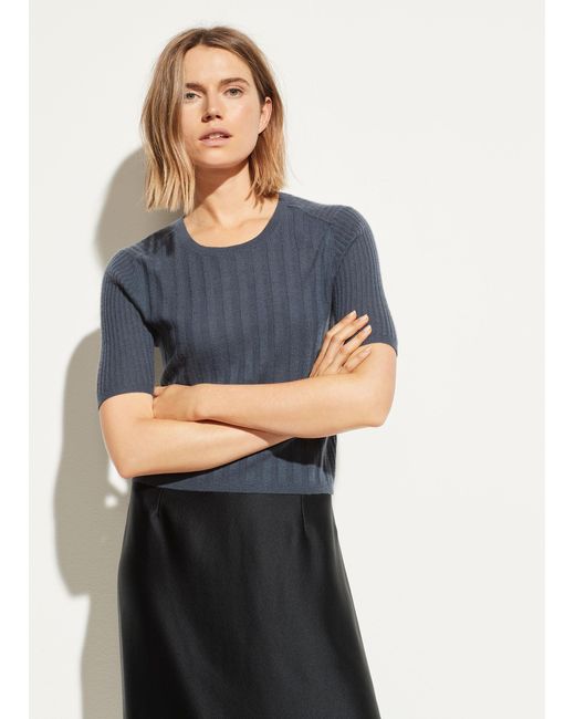 An everyday essential, this elbow-sleeve tee is done in lightweight ribbed cashmere with clean-finished edges and a slim fit. Colour: multicolour