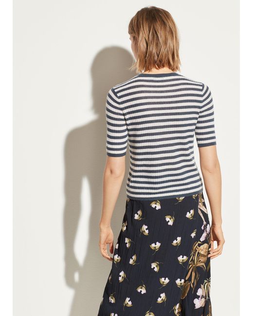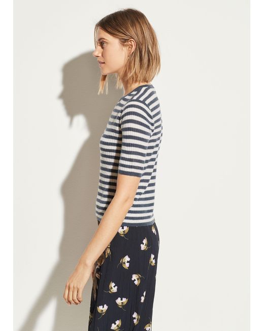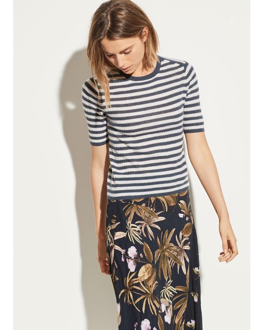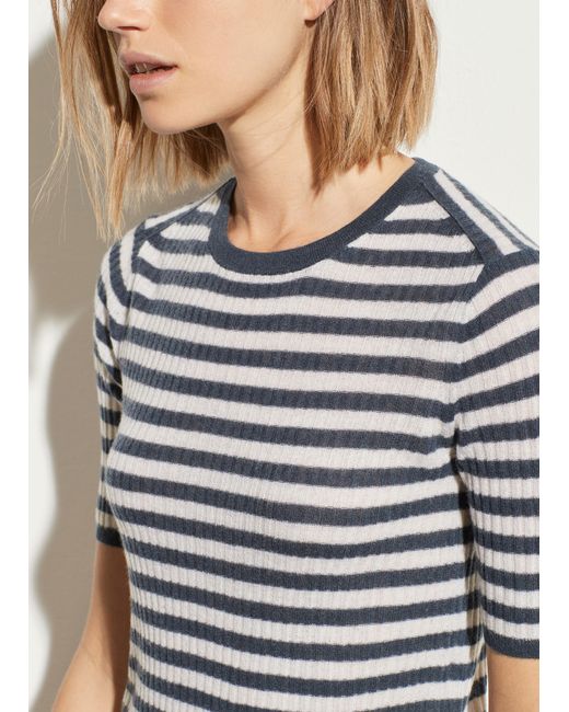 An everyday essential, this elbow-sleeve tee is done in lightweight ribbed, striped cashmere with clean-finished edges and a slim fit. Colour: multicolour