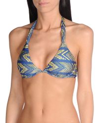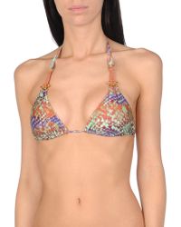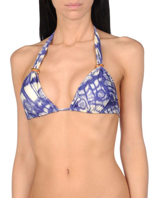Synthetic jersey, contrasting applications, two-tone pattern, self-tie closure, removable padded lining, stretch. 84% Polyamide, 16% Elastane. Colour: purple