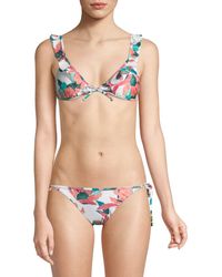 Women's Ruffle Front Tie Triangle Bikini Top - Bluebell Floral Print