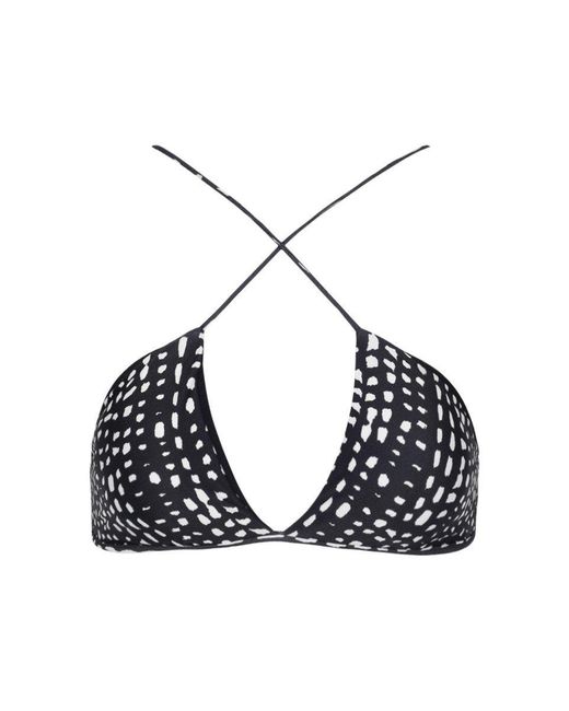 STYLE: Versatile triangle bikini top in black and white polka dot print. Straps can be worn parallel over the shoulders, or crossed at the front for added style. Adjustable ties at the back can be tied as loose or tight as needed for the perfect fit. Crafted from an ultra soft blend of Lycra and fully lined to ensure opacity and to create a comfortable, smooth fit. Metallic beads accent the back straps for a touch of on-trend hardware detailing. Pair with the ViX Dots Long Tie Full bikini bottom in dots. CARE: Hand wash in cold water with gentle detergent and lay flat to air dry. 84% polyamide, 16% elastane. Colour: black