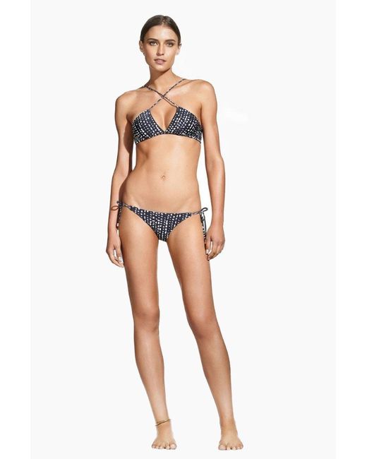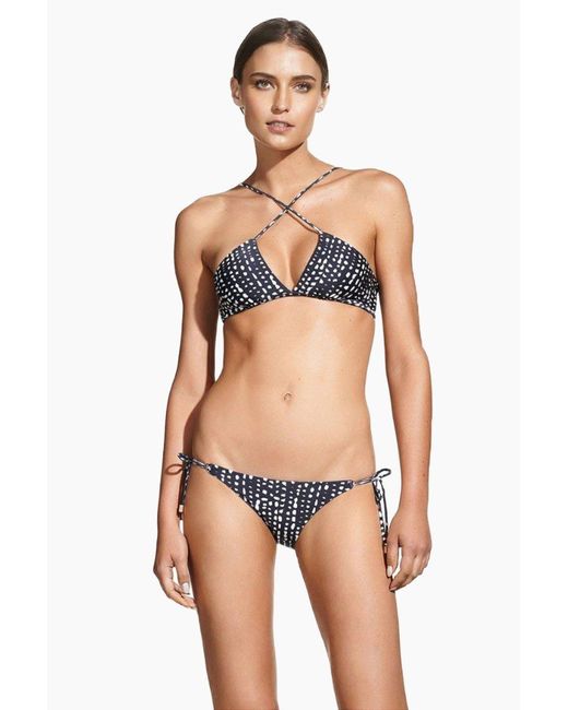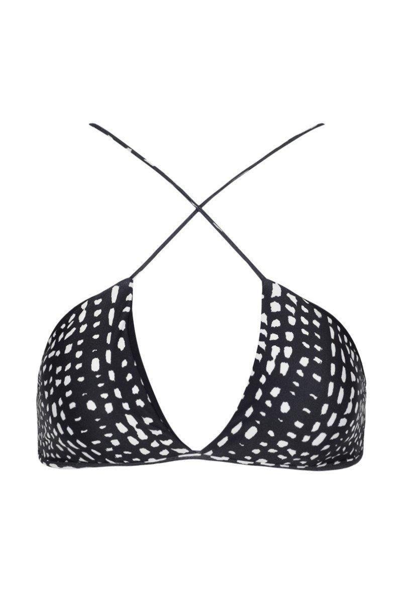 Women's Celina Cross Front Triangle Bikini Top - Black & White Polka Dot Print