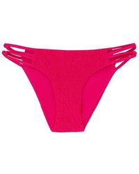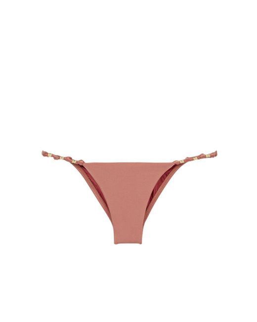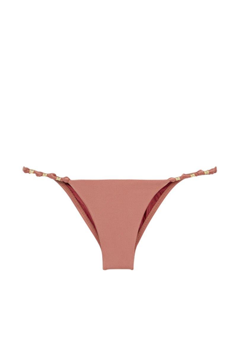 STYLE: Low-rise seamless cheeky bikini bottom in dusty rose. Low rise cut and thin side straps with knot and bead detailing are ideal for tanning as they leave minimal tan lines. Seamless fabrication with fully lined interior for a smooth, comfortable fit. Moderate rear cut shows off your curves while providing cheeky coverage. Pair with the ViX Swimwear Duchesse Paula bikini top in duchesse pink. CARE: Hand wash in cold water with gentle detergent and lay flat to air dry. 84% nylon, 16% elastane. Colour: pink