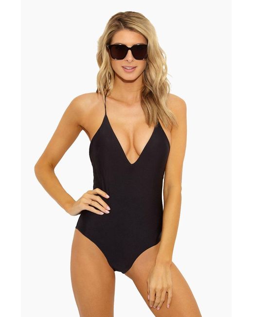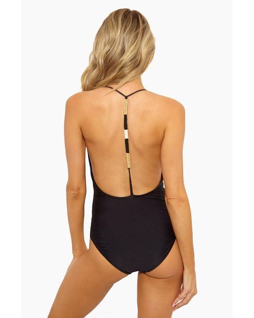Women's Ella Beaded T Back One Piece Swimsuit - Black