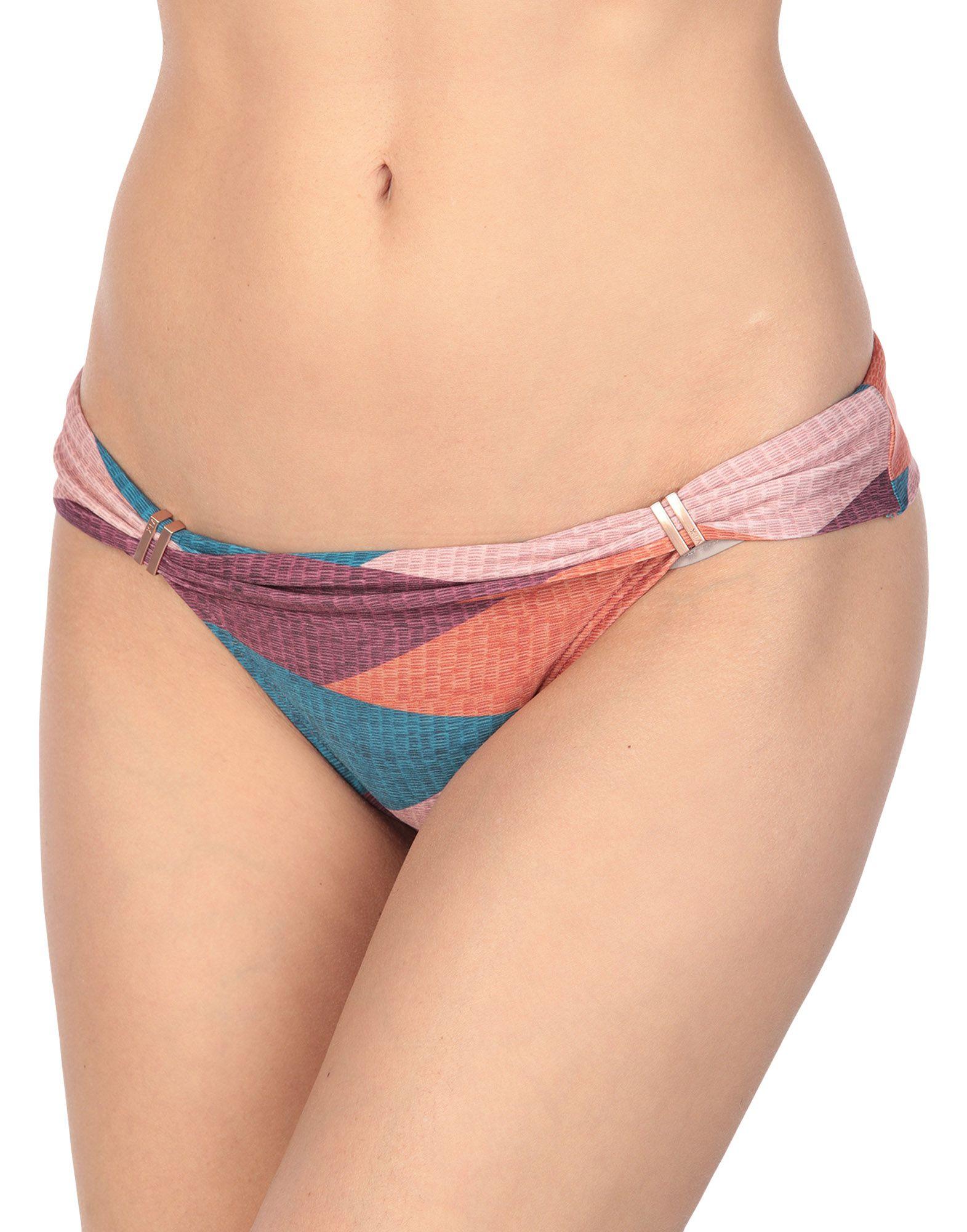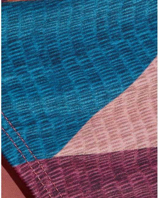 Synthetic jersey, logo, metal applications, multicolour pattern, no fastening, fully lined, stretch. 84% Polyamide, 16% Elastane. Colour: purple