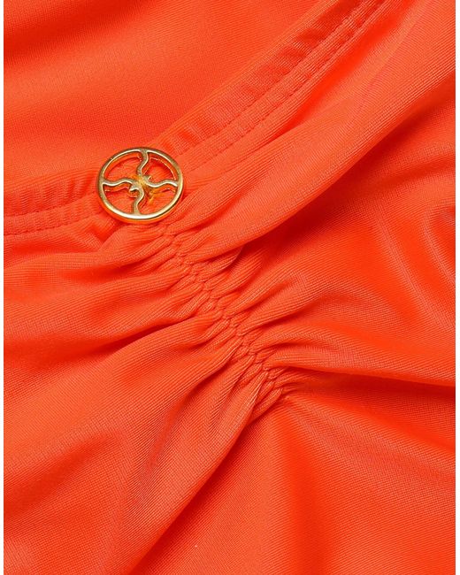 Synthetic jersey, logo, frills, basic solid colour, stretch. 84% Polyamide, 16% Elastane. Colour: orange