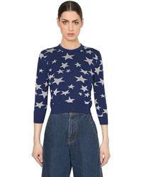 Color/pattern: nuage. Approximately 24.5in from shoulder to hem. Measurement was taken from a size small and may vary slightly by size. Design details: crewneck, dropped-shoulder sleeves with split cuffs, pointelle detailing, rib-knit trim. 100% cotton. Dry clean only. Colour: blue