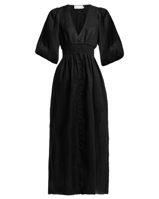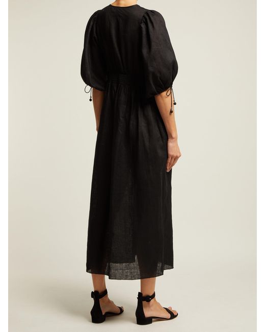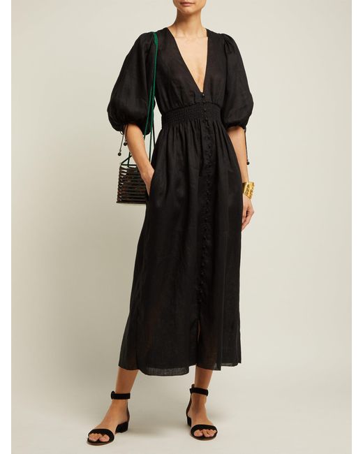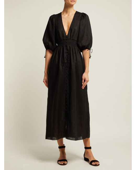Women's Black Primrose Shirred Linen Midi Dress
