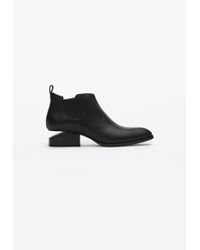 Since 2005, Alexander Wang has fast become known for his opulent textiles and his use of luxe textiles in his edgy and chic designs. His designs are must-haves for the brainy urban crowd. These black Kori stretch booties are crafted from leather and feature a pointed toe, an ankle length, a pull tab at the rear and a signature cut out mid heel. Material:Leather.