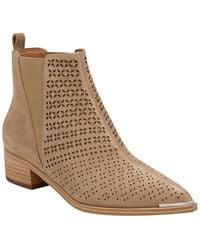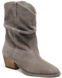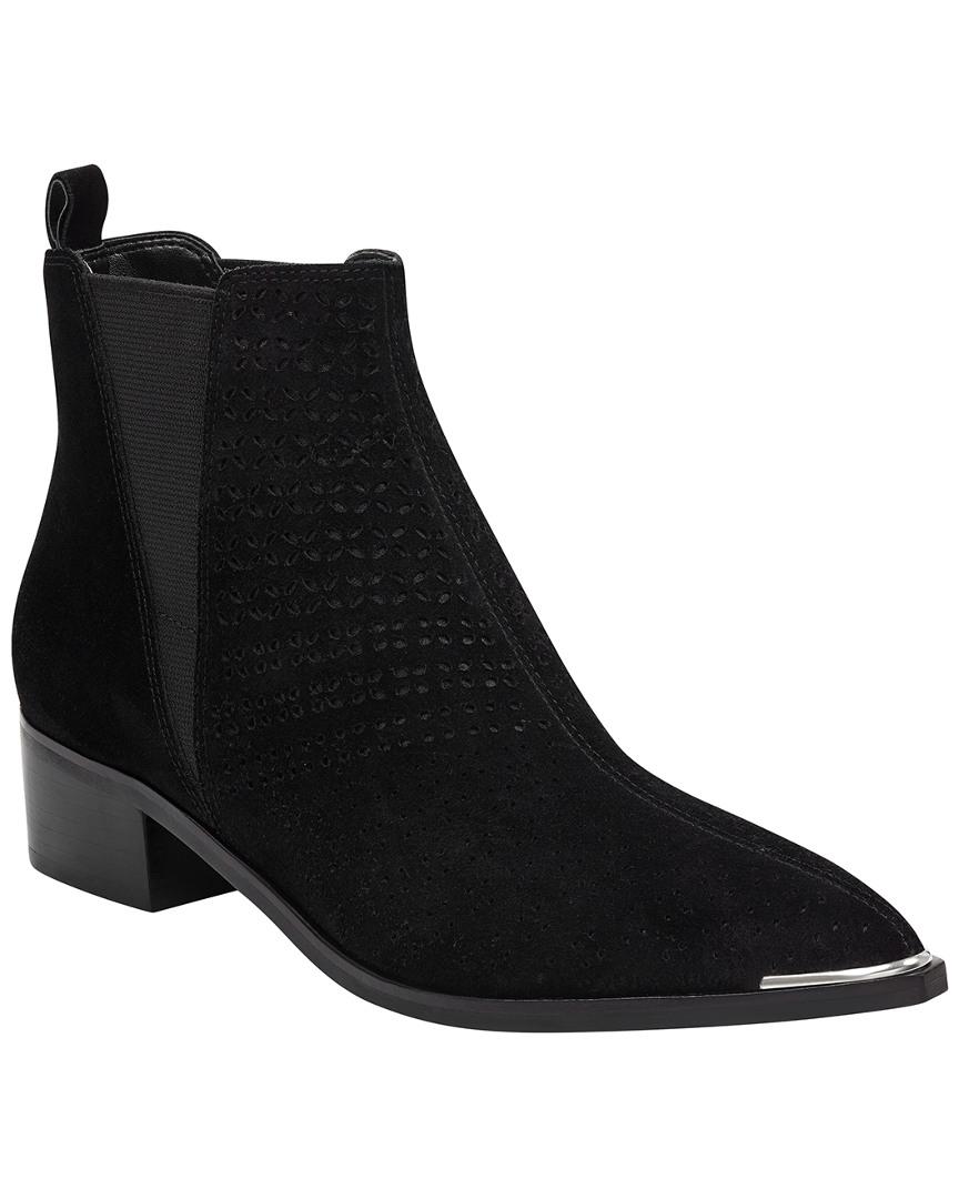 Geometric perforations provide a modern approach to this Western-inspired bootie. Design details: silver-tone hardware. Elasticized gores at sides. Synthetic insole. Rubber sole. 1.57in heel. 4.13in boot shaft. Please note: All measurements are approximate and were taken from a size 6; slight variations may occur. Choose from the following: Black suede. Grey suede. Medium natural suede. Colour: black