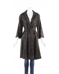 Grey Coated Silk Floral Lace Pattern Raincoat