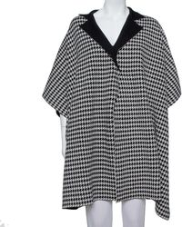 Monochrome Wool & Silk Houndstooth Cape Jacket - Black