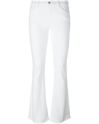 White Cotton Twill Denim Sequined Rosette Applique Flared Jeans