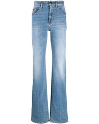 Dark Blue Cotton Stretch Denim Embroidered Floral Motif Flared Jeans