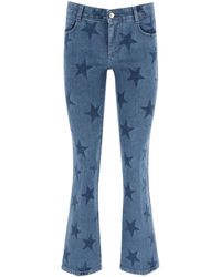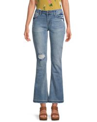 High Waisted Raw Hem Cropped Flare Jeans - Blue