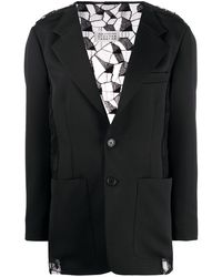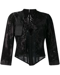 Sleeveless Lace Hem Silk Tuxedo Jacket - Black