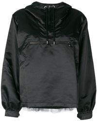Anorak Con Cappuccio In Raso Con Inserto In Tulle - Black